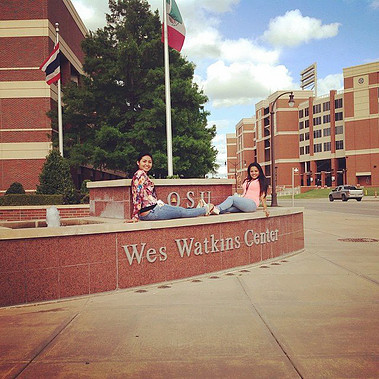 Las alumnas Sharol Dávila y Mónica Rendón Disfrutando de su tiempo libre en el campus de La universidad de Oklahoma.