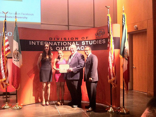 La alumna Mónica Rendón de la Ingeniería en Desarrollo e Innovación Empresarial recibiendo su certificado por OSU.